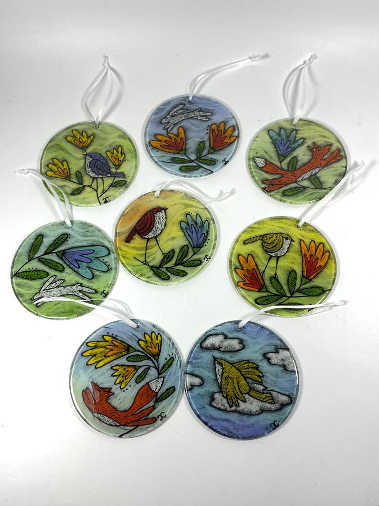 3 1/2 inch fused glass suncatcher by Silly Dog Art Glass