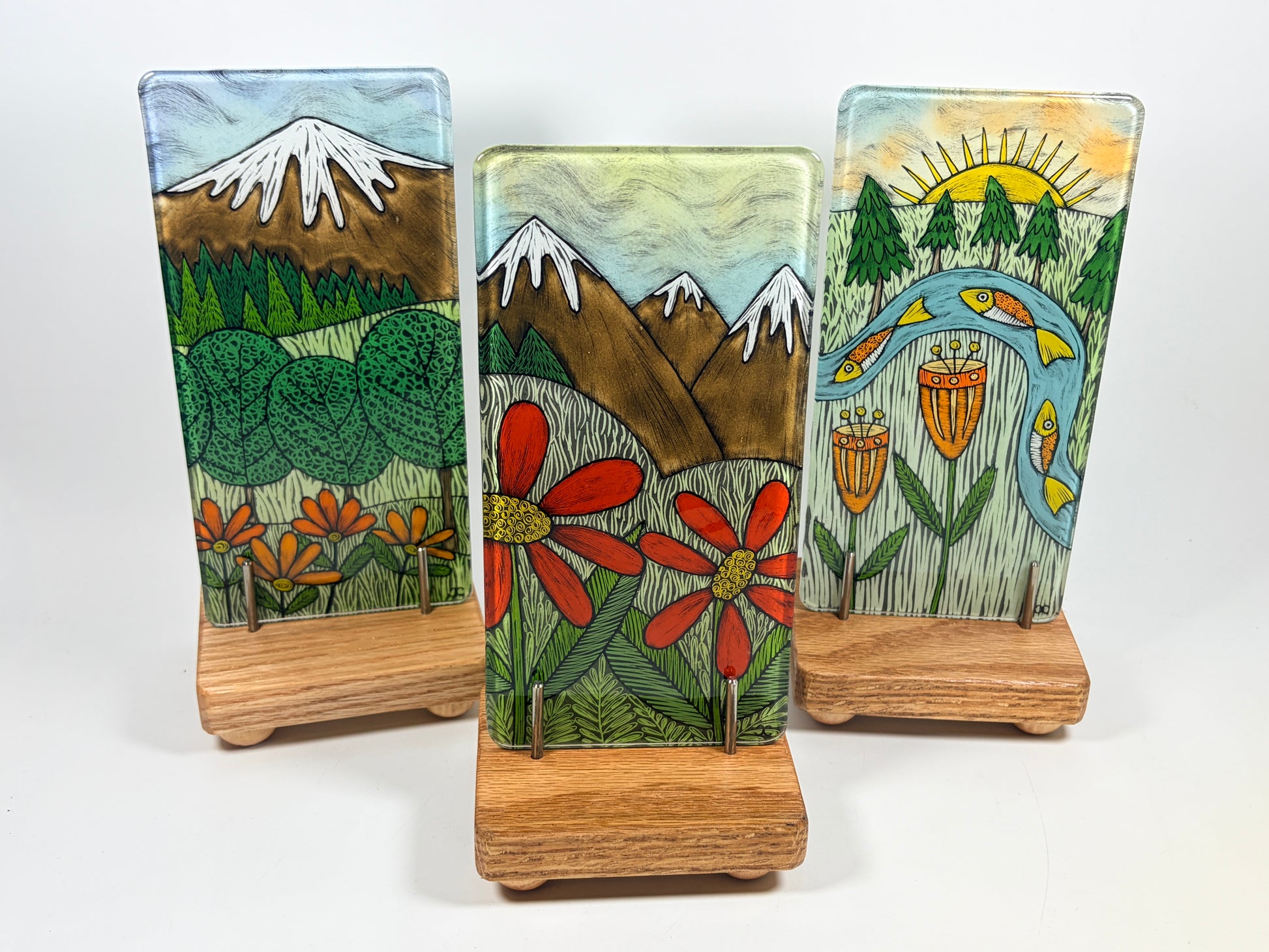 4x8 Tile with Wood Stand by Silly Dog Art Glass