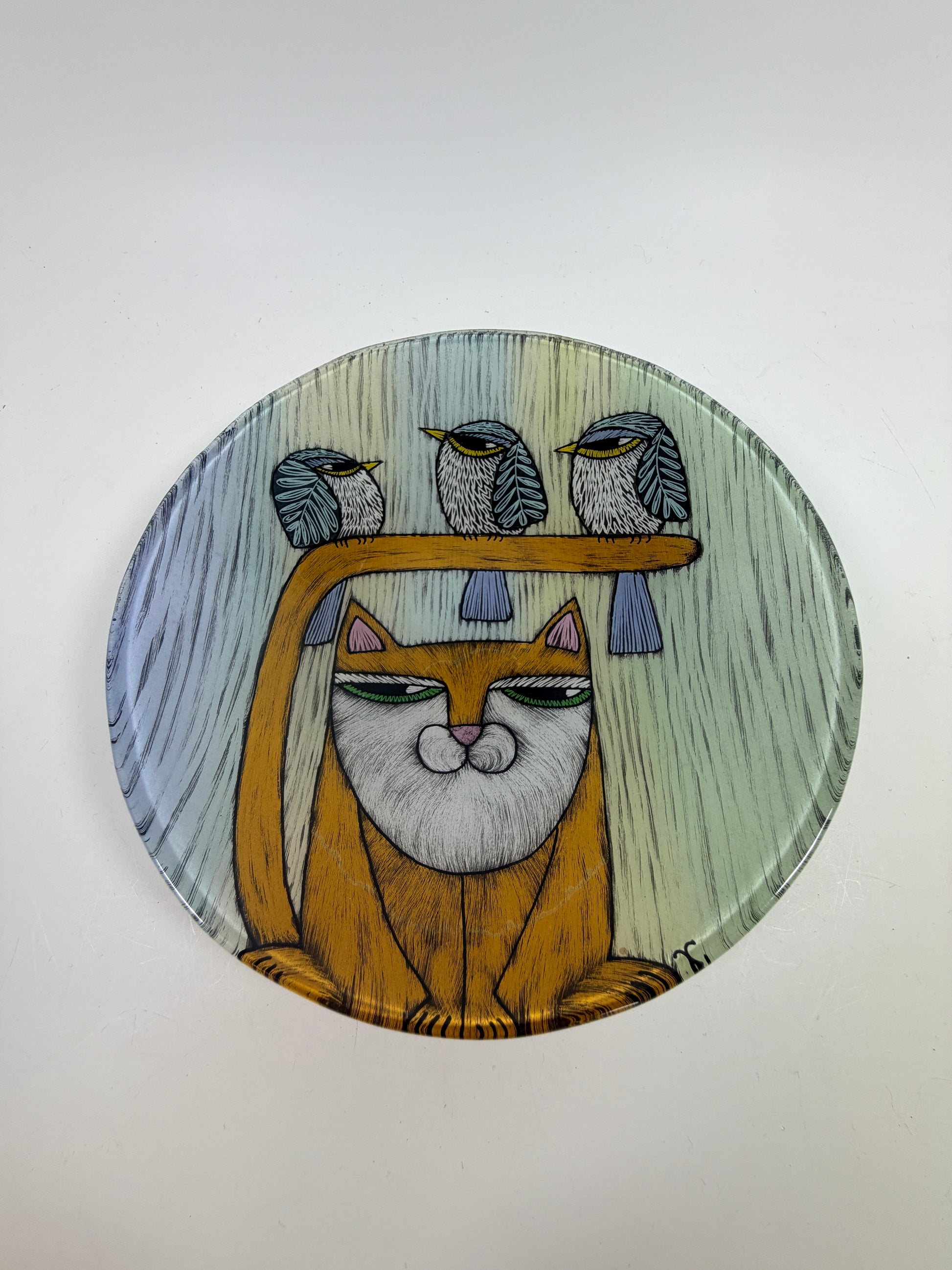 Cheryl Chapman, the artist behind Silly Dog Art Glass, creates cheerful, hand-painted glass art that’s guaranteed to make you smile. Using a unique reverse-painting process, Cheryl layers colorful enamel designs on clear glass and kiln-fires each stage to bring her playful birds, animals, and nature-inspired scenes to life. Her work feels lighthearted yet lovingly crafted—full of personality, charm, and just the right amount of whimsy. Each piece makes a delightful gift or a happy little upgrade for your own space… because art should be fun, too.