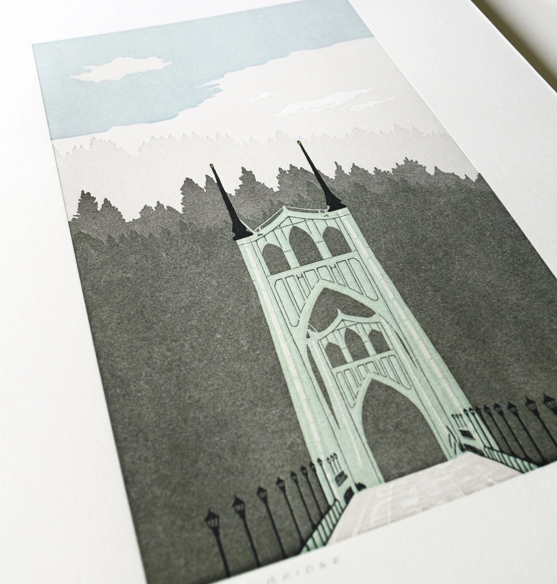 An original print of the beloved St Johns Bridge in Portland Oregon